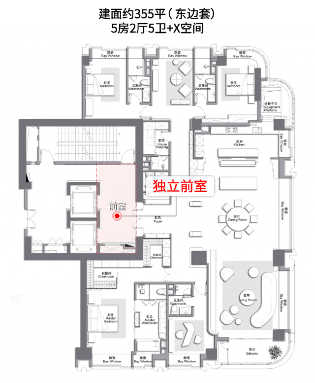 建面约355㎡大5房具有前室,